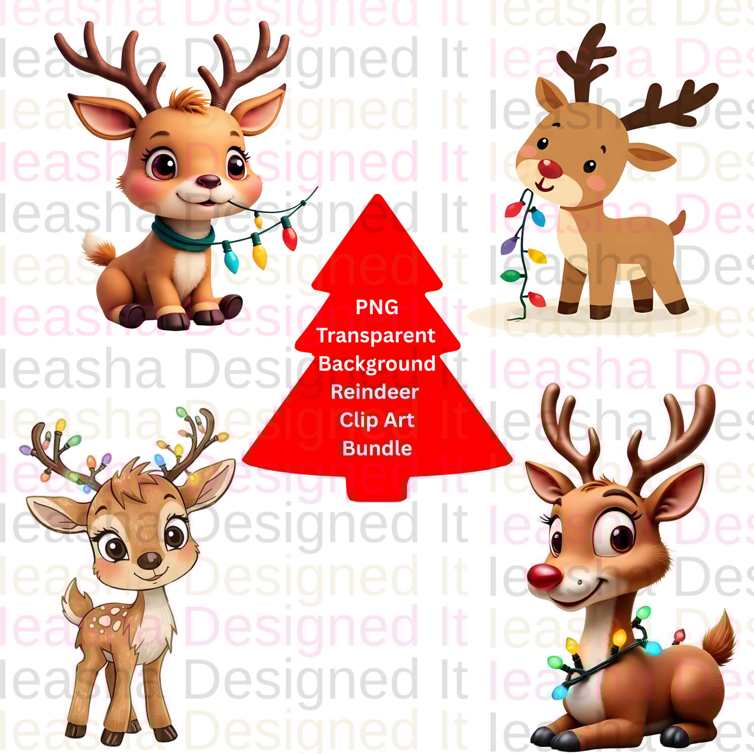 Festive Holiday Lighted Reindeer Clipart Bundle